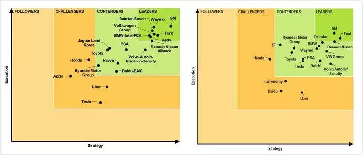 这让「通用」的实力凸现。在今年早些时候发布的 Navigant Research 的自动驾驶研究报告排行中,通用汽车从去年的第二变为第一。