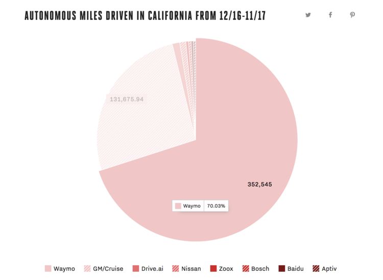 也正是这样,让通用汽车在 2017 年加州的测试里程数据中,成为唯一能和谷歌 Waymo 公司抗衡的企业。