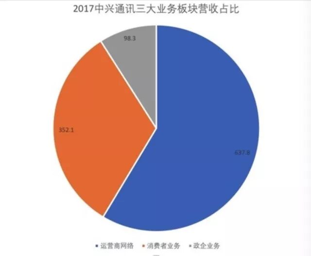 中兴通讯以通信设备制造起家,后为拓展电信运营商市场逐步进入手机制造领域。根据其2017年年报来看,以通信设备为主的运营商网络营收占总营收的58.6%,而以手机业务为主的消费者业务占比为32.4%。